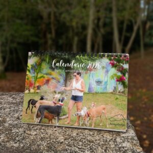 Este año, vendemos también los calendarios de la protectora Amigo Galgo, proyecto que admiramos y es un punto clave en la formalización de La Isla de Tali como refugio de animales.